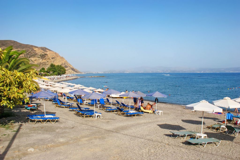 Agia Fotini Beach (also known locally as Agia Fotia) is a small, tranquil beach located near the village of Kerames, about 39–49 km south of Rethymno, on Crete’s southern coast. It’s one of the lesser-crowded gems of the region, offering a peaceful coastal escape framed by rugged natural beauty.