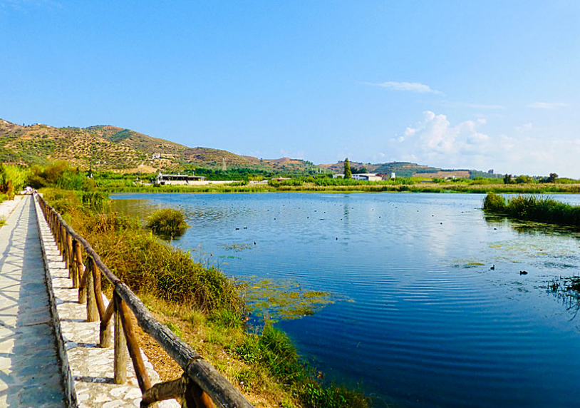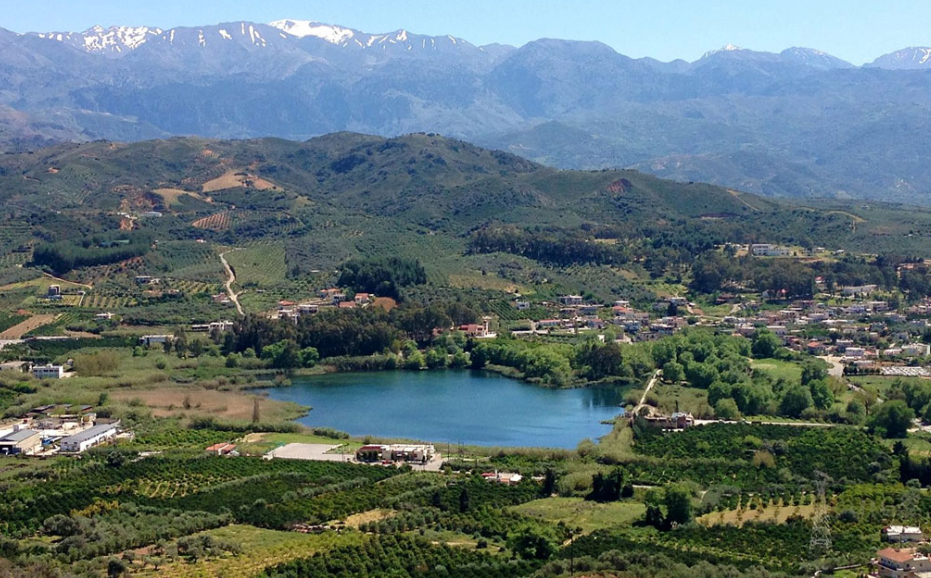 The artificial lake of Agia located near the village Agia, km west of Chania. It is small lake of 450 acres, which communicates with the valley south of the range. This valley is considered as the most liquid of Crete. The  lake receives water from underground springs and the river Xekolomeno.