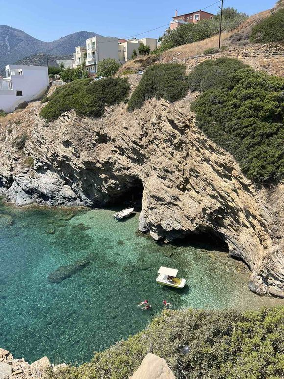 The coastline forms a series of 5 coves of rare natural beauty, where visitors can swim in the crystalline azure waters and enjoy the peaceful atmosphere and the nice facilities. The shore is mostly sandy, but it can get a bit rocky in places, while a small port has also been constructed near the village. Two of the beaches, Varkotopos and Livadi, have even been awarded with a Blue Flag.