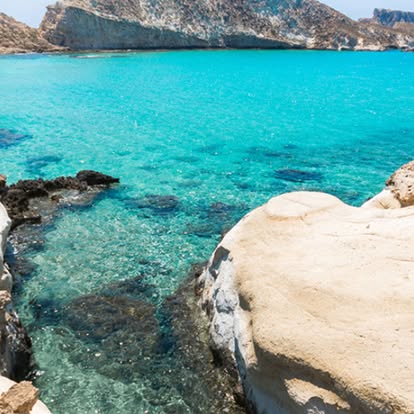 As the ship approaches the island, you will have the chance to see the lovely beaches, the caves, and magical bays the seawater formed in its soft rock formations.