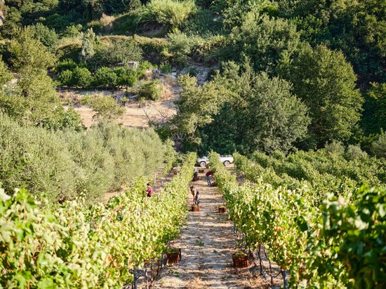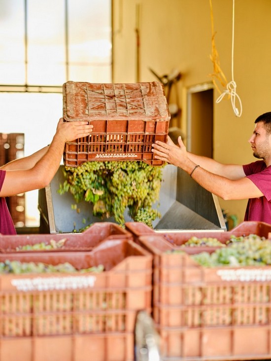 We cultivate locally grown white varieties Vidiano, Malvasia di Candia, and Assyrtiko, as well as red varieties Kotsifali and Liatiko, alongside international varieties Cabernet Sauvignon, Syrah, and Chardonnay, all organically.
