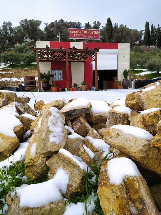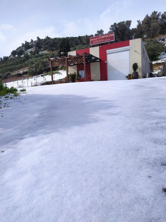 Our practical knowledge of viticulture, combined with the guidance of experienced scientists, contributed to the creation of our first wine varieties and our initial awards in both local and international competitions. Our winery is situated in the village of Kerasia, in the Heraklion municipality, in an area lush with vineyards and olive trees. The broader region belongs to the Dafnes Protected Designation of Origin (PDO), where the Liatiko grape predominates. The name of our winery, Efrosini, comes from the ancient Greek word “efreno,” meaning delight or to please someone. As our ancestors used to say, “wine gladdens the heart of man.”