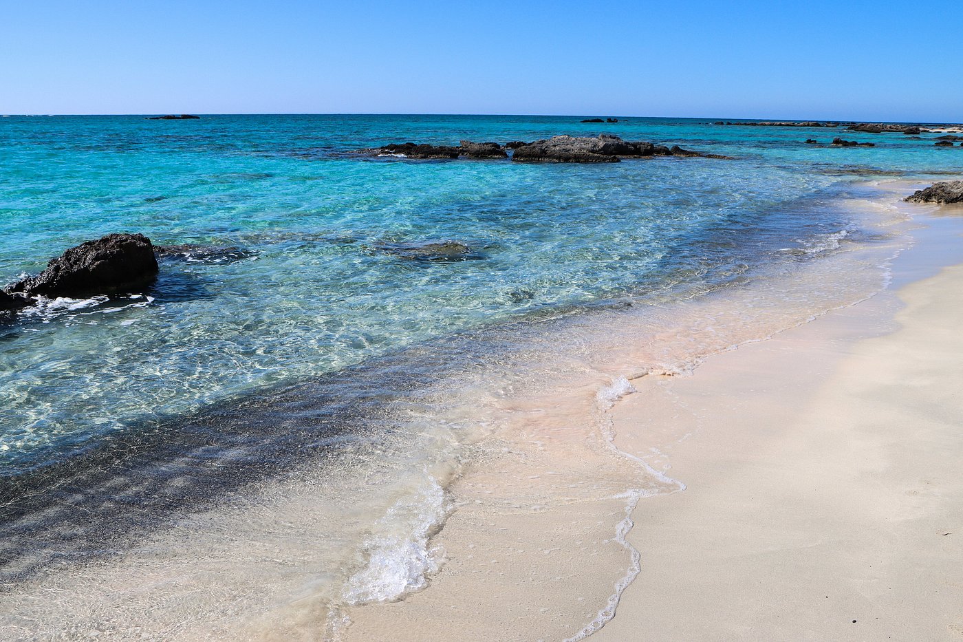 Located on the southwest coast of Crete, this remote beach is best known for its pink sand. However, temper your expectations as the amount of pink on display varies with conditions and the season. Regardless, the crystal clear waters make this a popular summer vacation spot, attracting sunbathers and watersport enthusiasts alike. Also, hike up to the neighboring cedar tree reserves for a change of scenery. Visit in the morning to beat traffic and secure a chair and umbrella before the crowds arrive. Or come in the evening for a stunning sunset when most people have left.