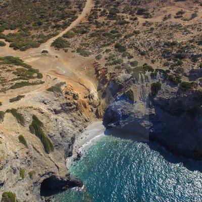 Glaros Beach is a beautiful strand with crystal-clear waters, tucked away in a small, sheltered cove. Surrounded by cliffs, it is accessible on foot.