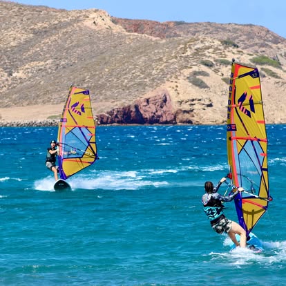Welcome to Gone Surfing Crete! We are not your typical windsurf and wingfoil center; we are a boutique center 'at the end of the road'. One of the most well-known windsurfing and wingfoiling stations for its equipment and team, positioned on one of the windiest beaches in the world, Kouremenos! We are pleased to be at the forefront of the wingfoil revolution, offering the latest trends and toys for the whole family. Our center is small enough to get to know the people and interact with the owners daily, yet big enough to offer you a choice of gear and a range of experience to draw on if you need it. Windsurfing, Wingfoiling, Tandem windsurfing, Wind foil, Stand-Up paddleboard, and fun in the water are what we offer. All our reviews converge on the stations’ unique atmosphere, making everyone feel welcome and part of the family.