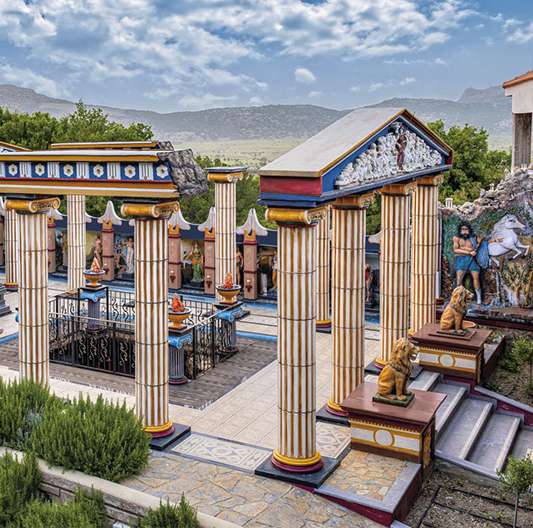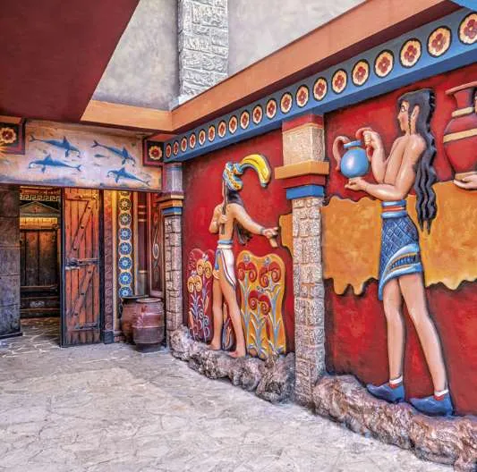 The park presents themes related to Greek mythology, the Minoan civilization, and traditional rural life in Crete.
