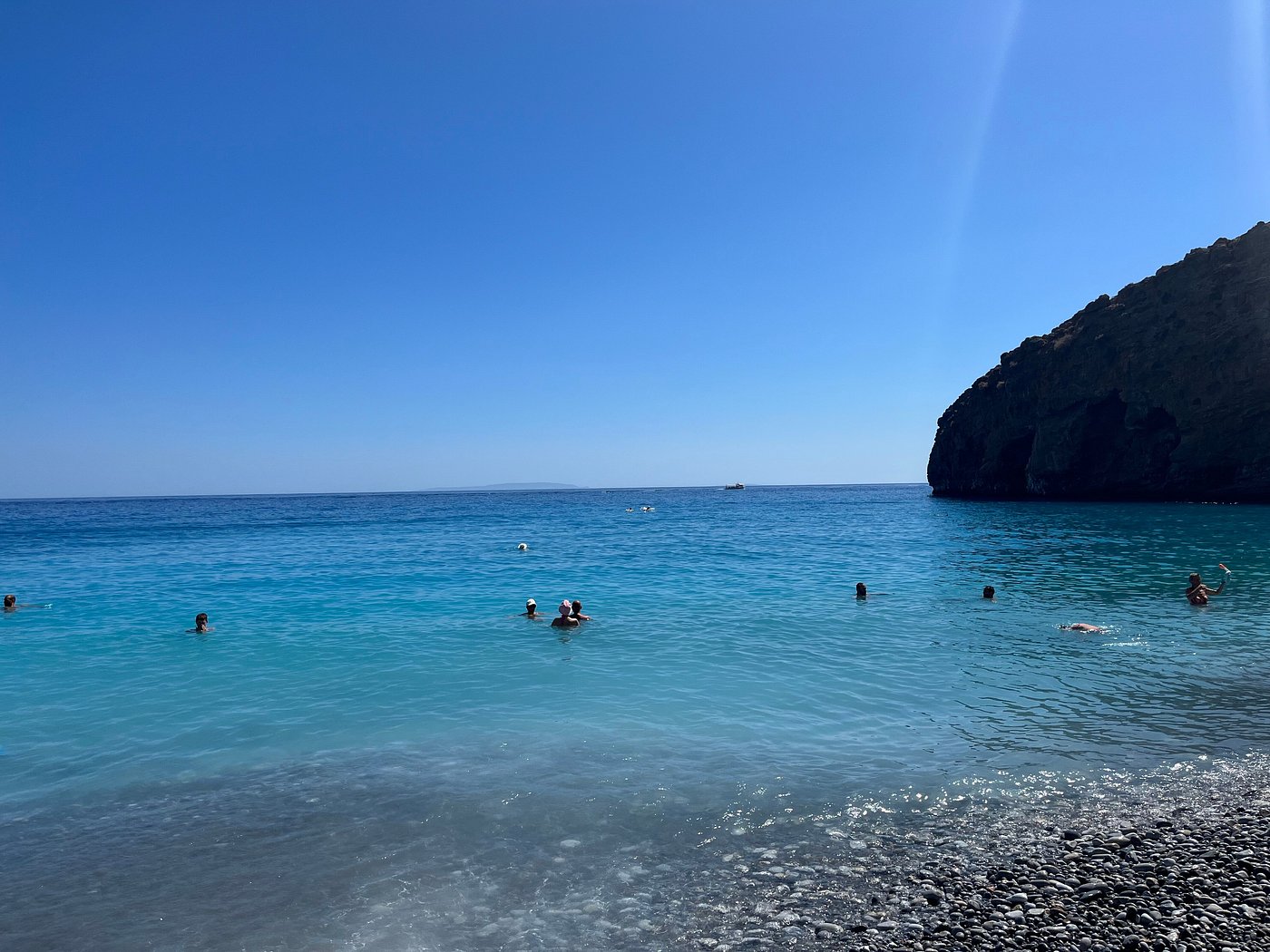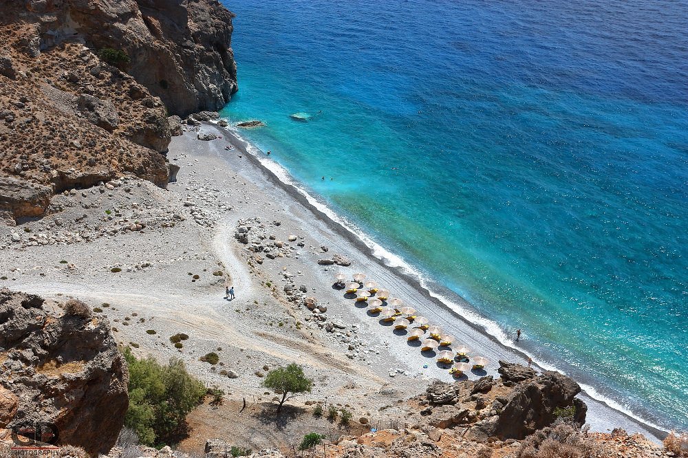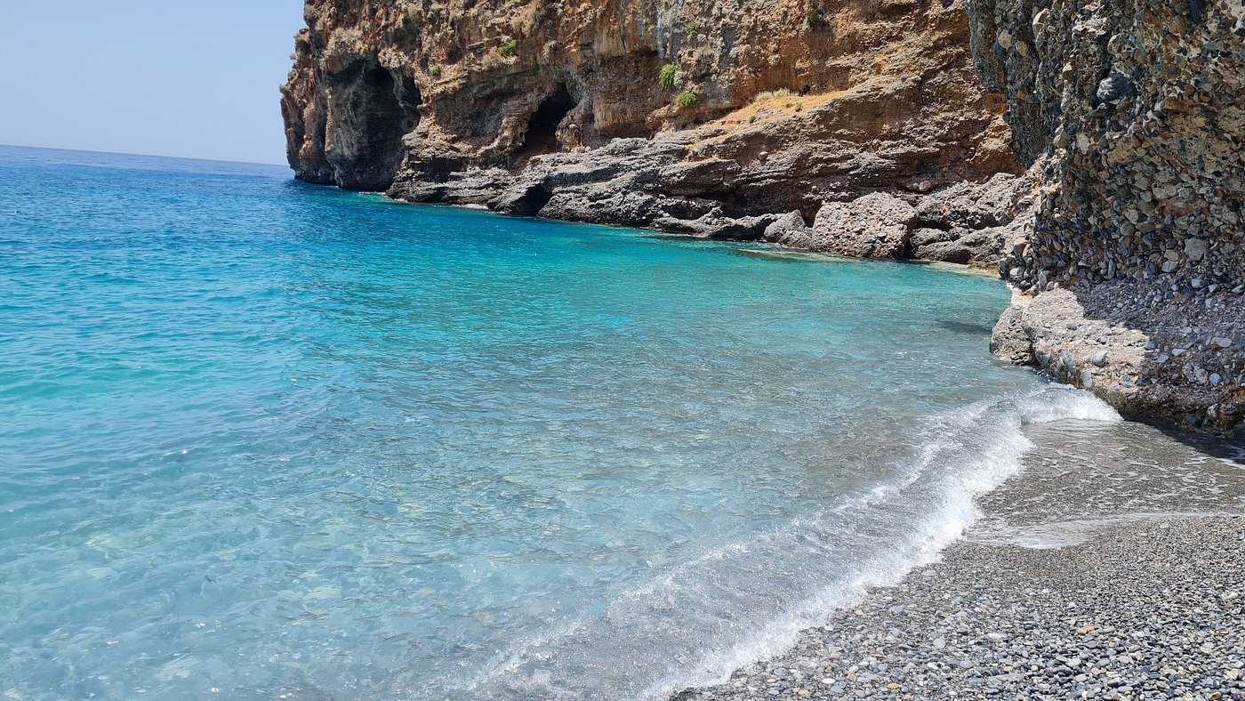 It is a breathtaking place at south Crete with clear blue waters, white pebbles and impressive caves at its rocky coastline.