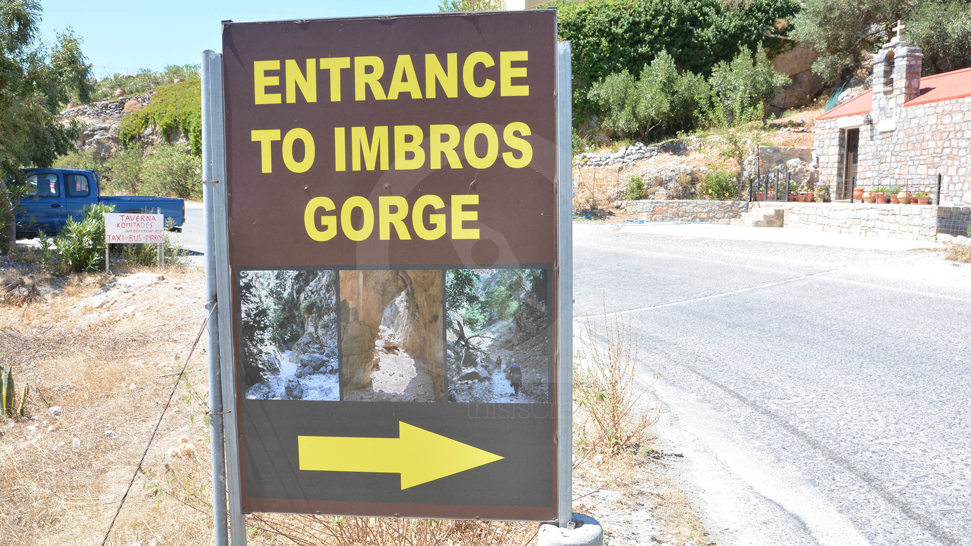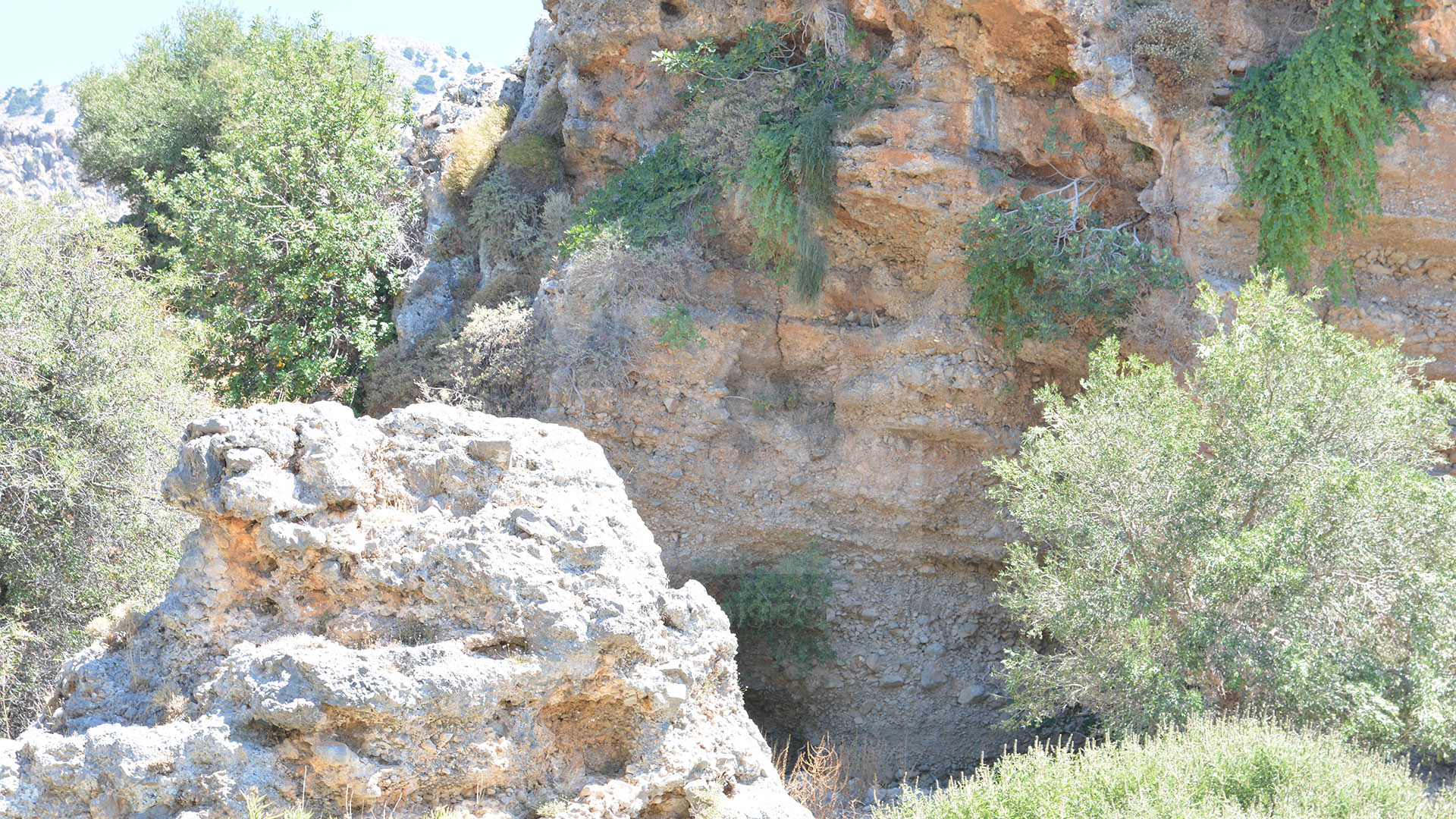 The Imbros Gorge is a 7-mile gorge in Crete that was used by Allied soldiers to escape to Egypt during World War II. Today it is an easy and popular hike, less demanding than Samaria Gorge, with a small entrance fee, a narrow rocky path, and a duration of about two to three hours. It is best to start early to avoid the heat.