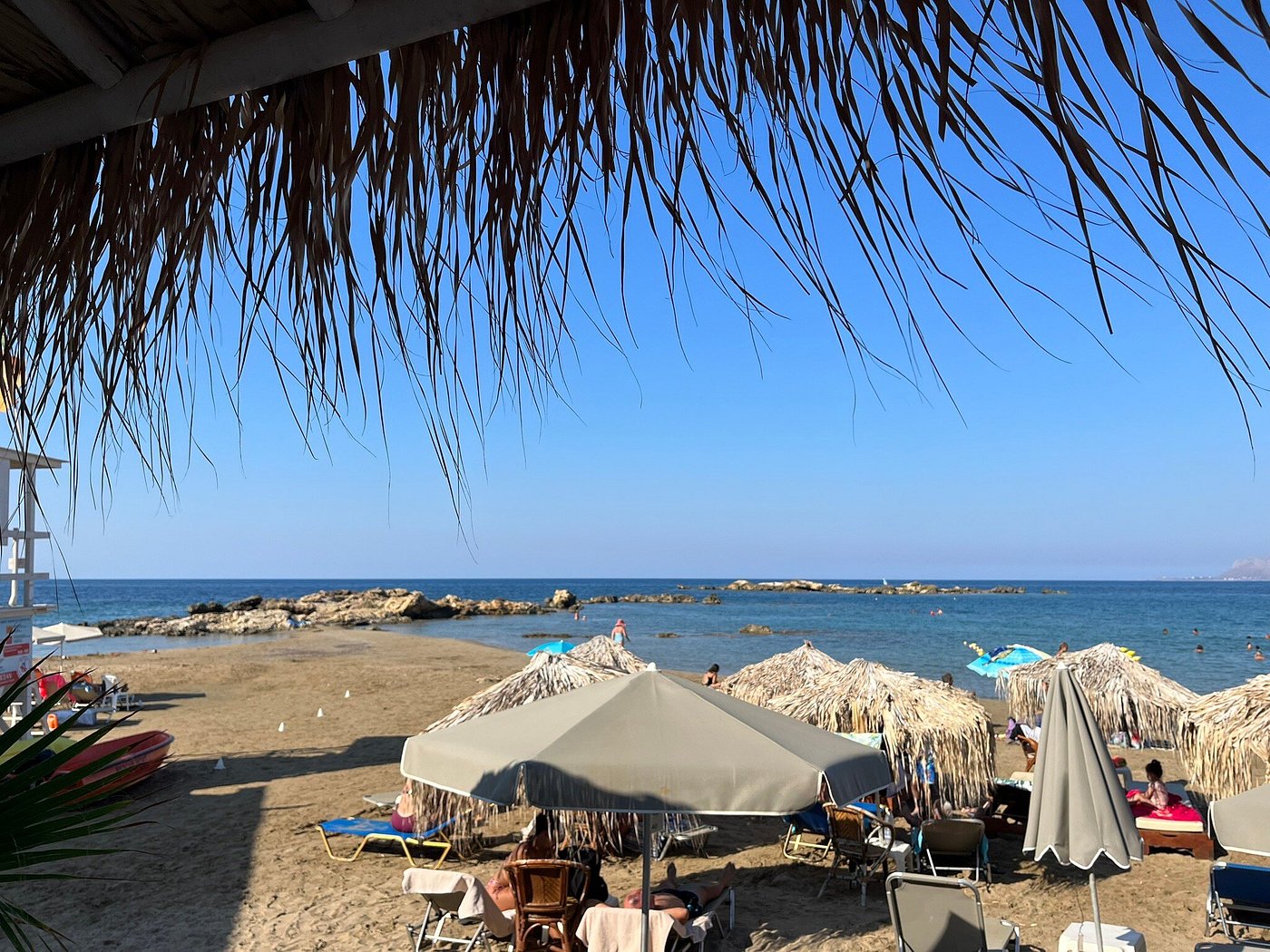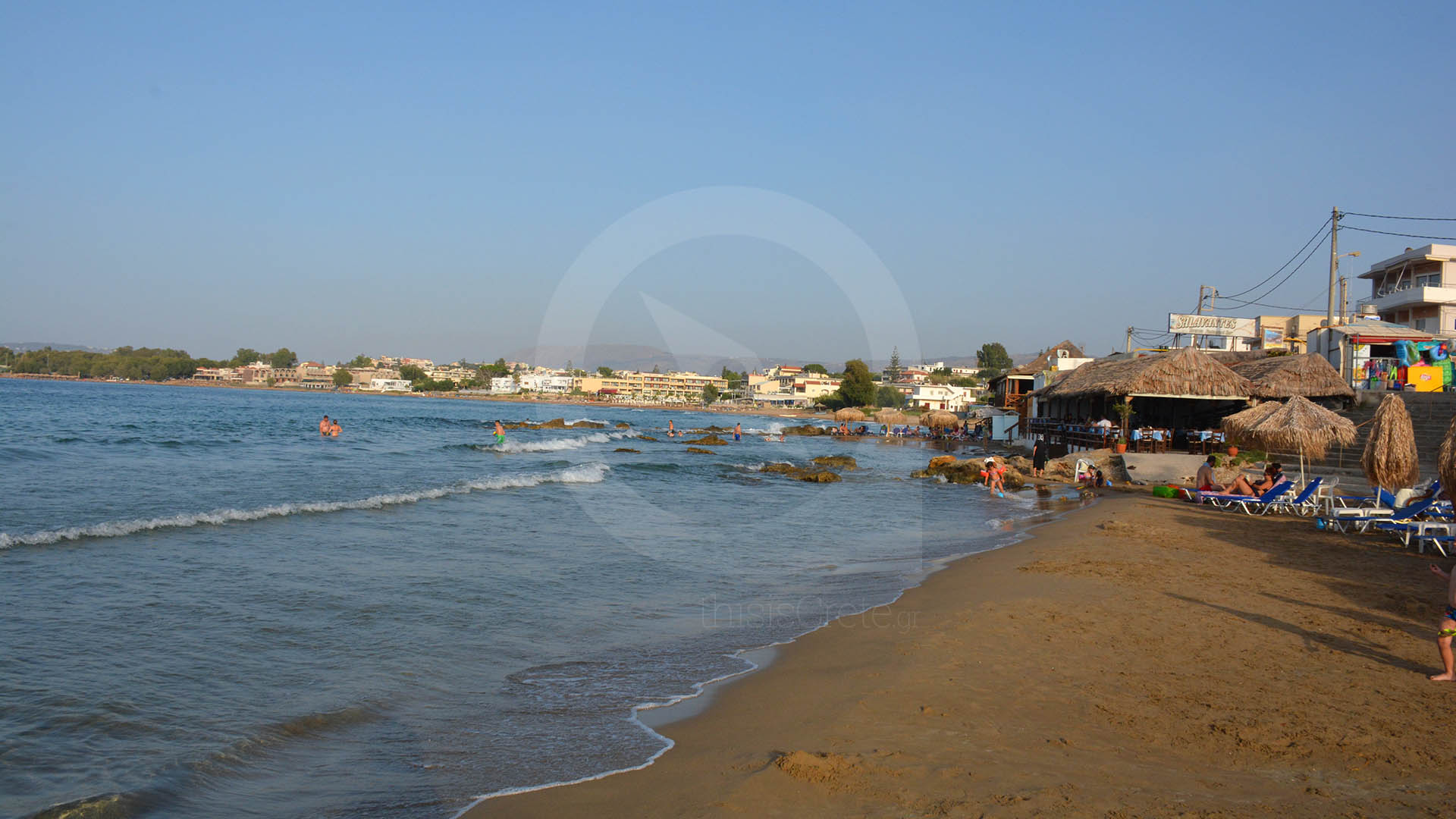 The sea is usually clear and calm, although on windy days small waves appear, creating a pleasant breeze during hot summer months. Kalamaki Beach offers good facilities, including sunbeds, umbrellas, showers, beach bars and nearby tavernas serving traditional Cretan food. There are also free areas for visitors who prefer a more natural and quiet beach experience.