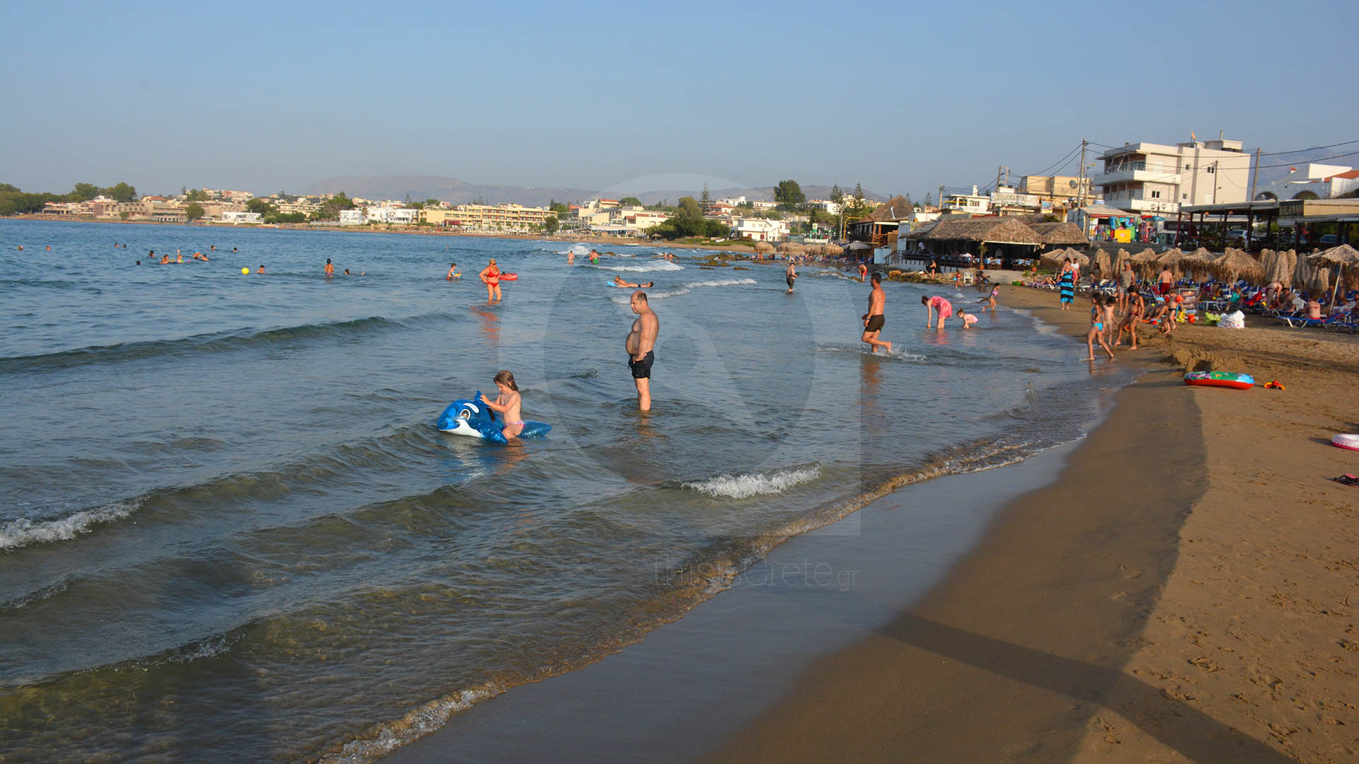 Kalamaki Beach is a popular and well-organised beach located in the Chania region, just a short drive from Chania town. The beach has a long stretch of soft golden sand and shallow, gently sloping waters, which makes it ideal for families with children and for relaxed swimming.