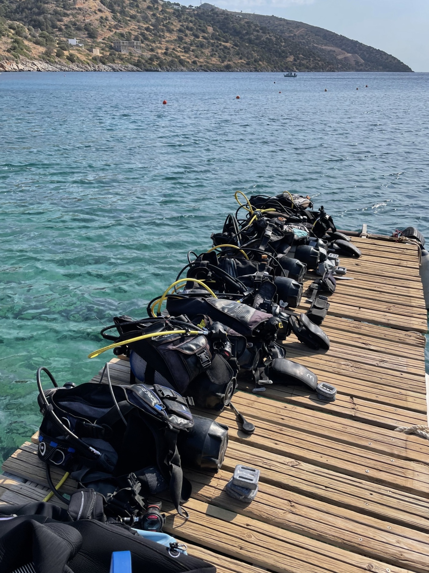 Mediterranean View Diving Center is located right on the beach in Agios Nikolaos, just a few steps from the pier—ideal for both beginners and experienced divers.