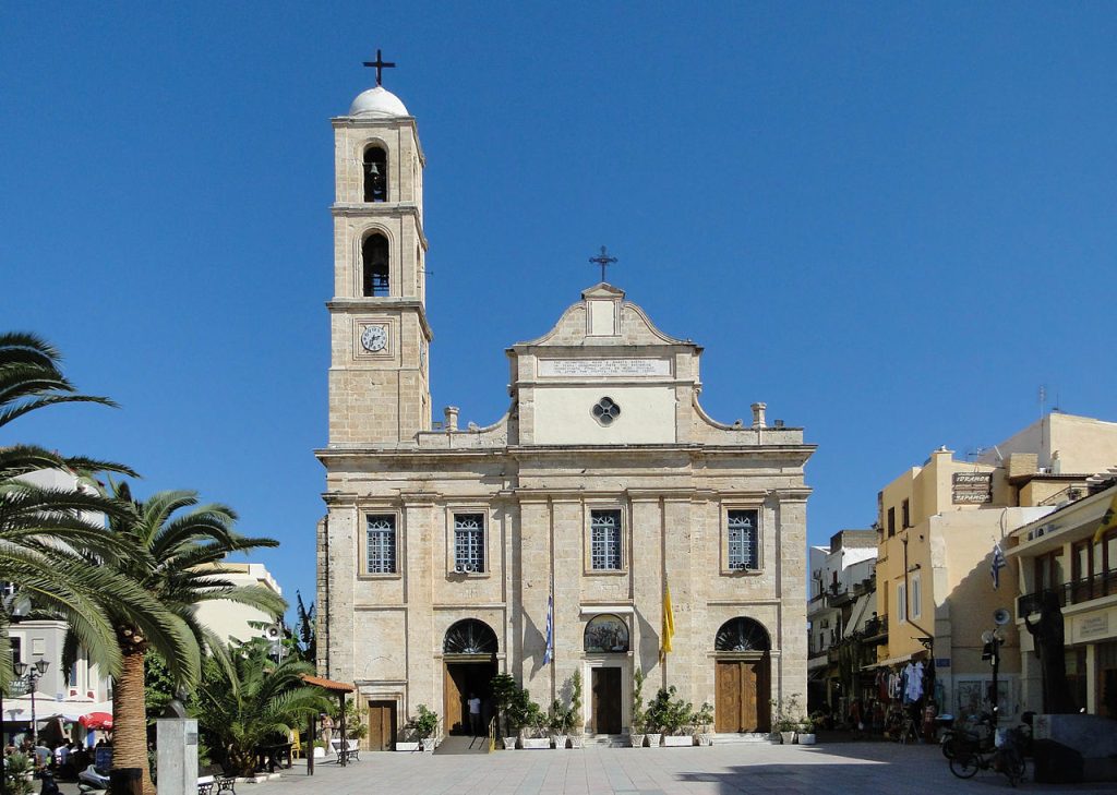 Panagia Trimartiri is the metropolitan church of Chania, as well as the patron saint of the city. Dating back to 1860, while it is built on the foundations of an earlier temple. It is a three-aisled temple, with the central aisle dedicated to the entrance of Holy Mary in the temple of Solomonta, the north to Saint Nikolas and the southern to the Three Holy Hierarchs. About 1645, the temple was turned into a soap factory by Mustafa Pasha, to whom the area belonged, while the legend says that after the intervention of the Holy Mary, he changed his mind and allowed the Christian residents to perform the erection of the church, which was completed in 1860, giving it, its today's form.