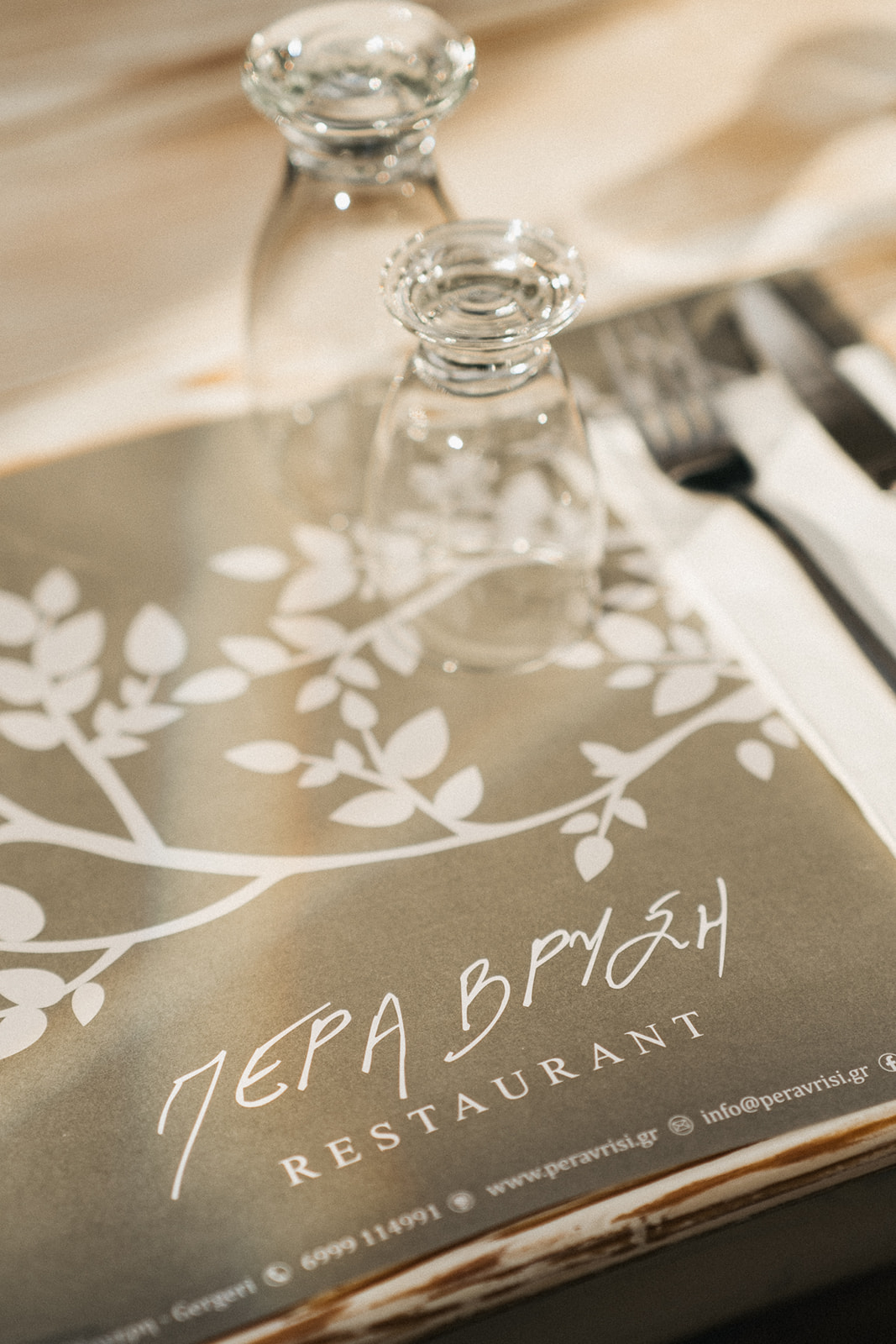 Next to the restaurant flows the natural spring that gave Pera Vrisi its name, known for its clear mountain water. In winter, the atmosphere is cozy and intimate with a fireplace; in summer, guests enjoy a spacious panoramic terrace, easily shaded and open to the mountain air.