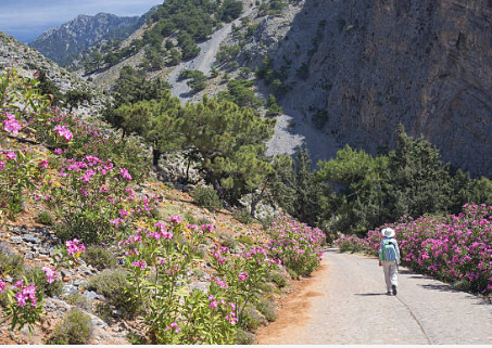 The park begins at the Omalos Plateau (around 1,200 meters above sea level) and descends all the way to the coastal village of Agia Roumeli on the Libyan Sea.