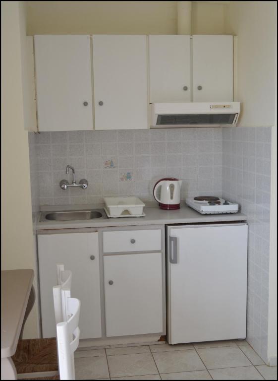 La Luna Apartments in Stalis offers family rooms with kitchenettes, balconies, and private bathrooms. Each unit includes a dining table, refrigerator, shower, and TV.