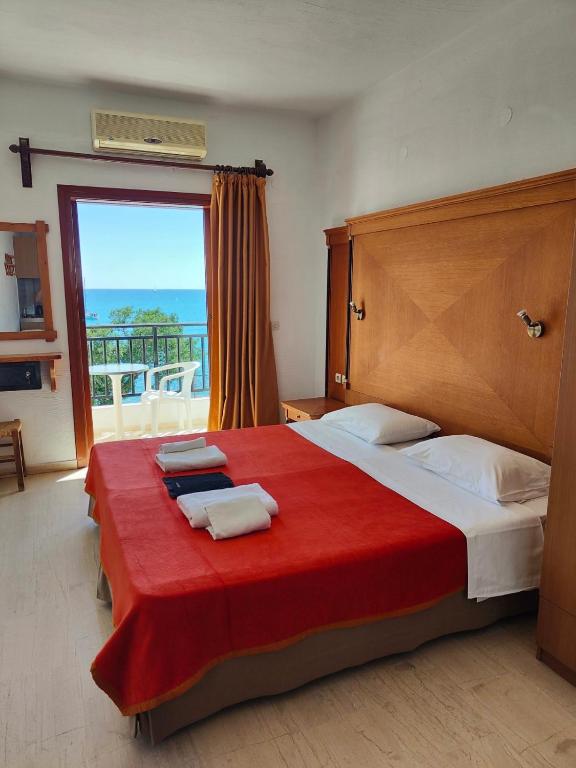 Each apartment features a kitchenette, balcony, private bathroom, kitchen, hairdryer, refrigerator, shower, tiled floors, electric kettle, kitchenware, wardrobe, and toaster. Additional amenities include sea and garden views, ground-floor units, inner courtyard views, and interconnected rooms.