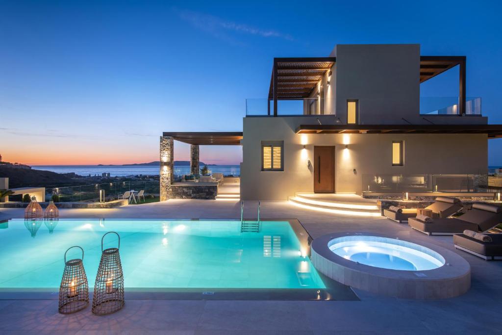 Kymo Instyle Villa - Sea View Private Pool Jacuzzi, which features an outdoor pool, a garden, and a terrace, offers accommodation in Kokkíni Khánion with free Wi-Fi and sea views. Located 1.4 km from Thalassa Konaki Beach, the property also has a bar and free private parking.