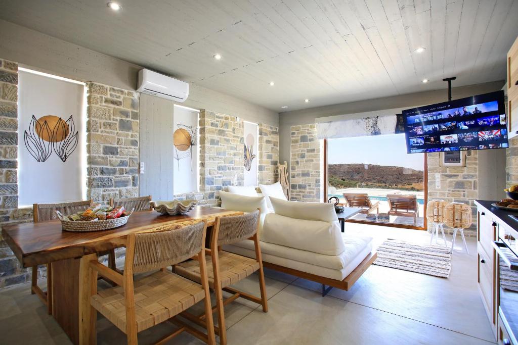 Phaestias Terra Villas in Heraklion offers a villa with two bedrooms and two bathrooms. The property features a spacious living room, terrace, and garden. Guests enjoy sea views and a private entrance.v