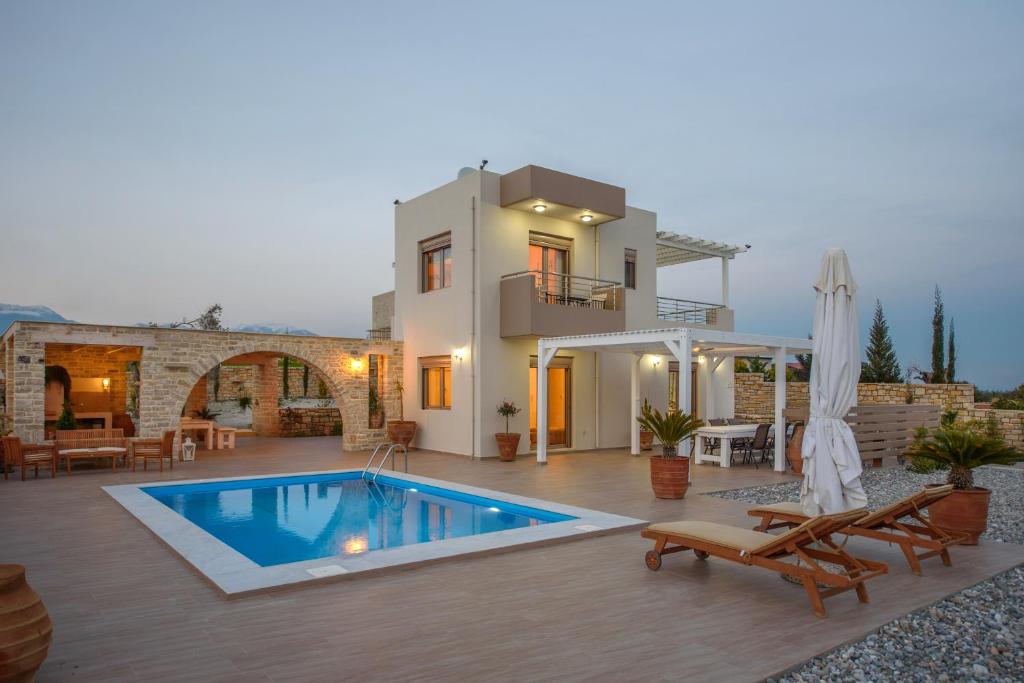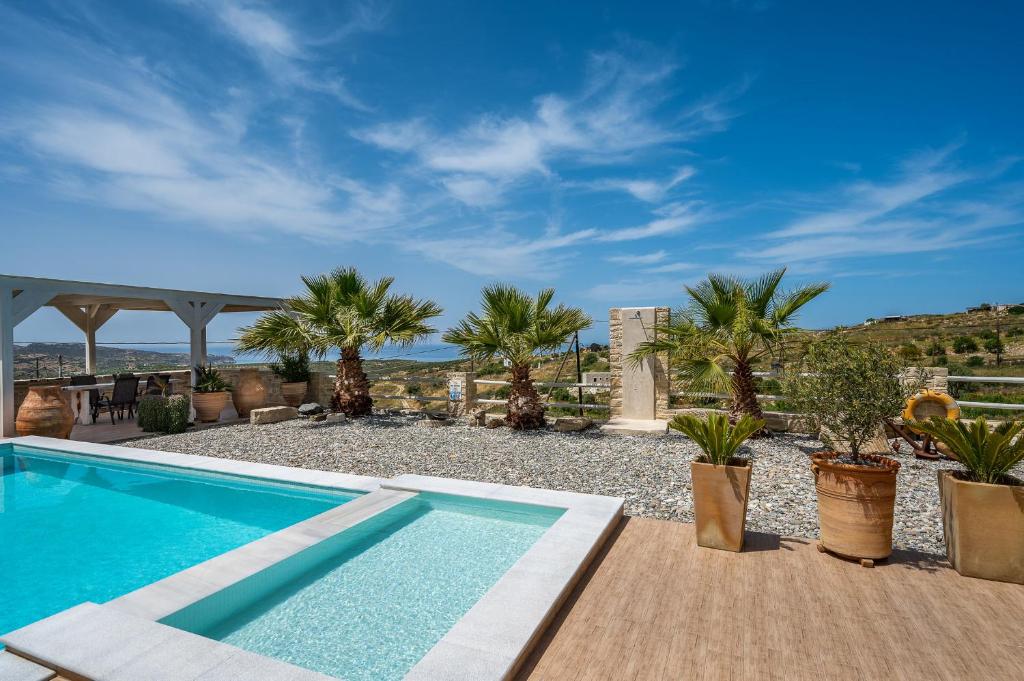 Golden Sky Villa in Kamilari offers a villa with a swimming pool and a beautiful garden. Guests enjoy free WiFi, ensuring connectivity during their stay.