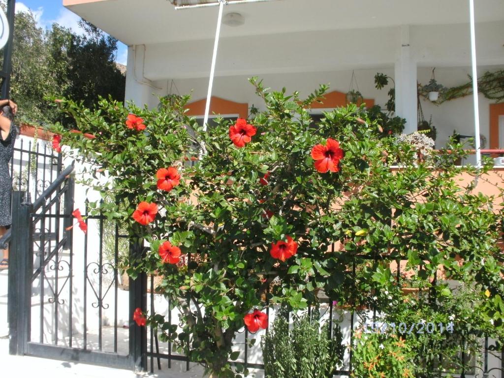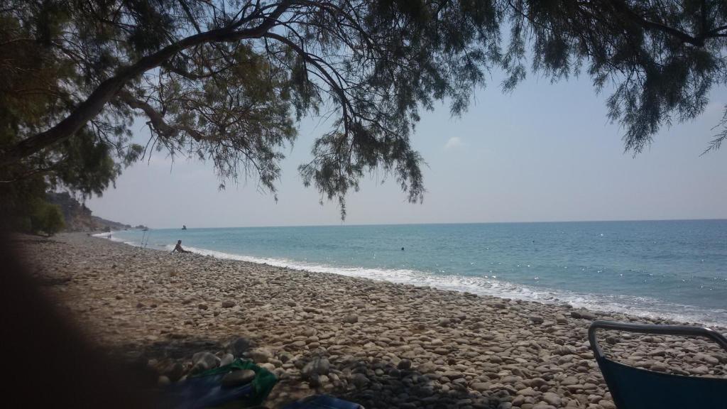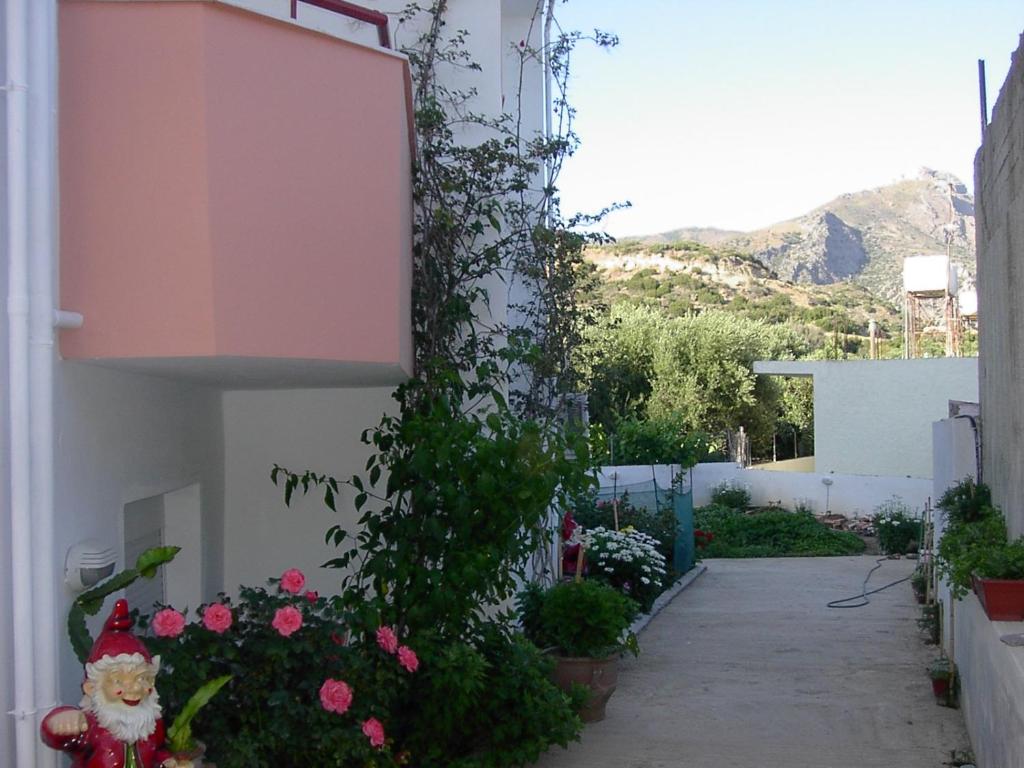 Xenos Apartments in Keratokambos offers direct beachfront access with a sun terrace and a lush garden. Guests can relax on the beach or enjoy the outdoor seating area.